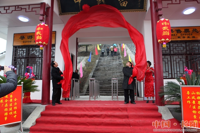本网讯 继巴国故都景区开园纳客、木瓜花都文化旅游节成功举办、“湖北名歌大家唱”长阳首唱演出之后,4月5日,位于道教圣地天柱山的湖北省长阳土家族自治县中武当旅游度假区揭牌暨创建国家4A景区启动仪式举行。湖北省委统战部副部长、省民宗委主任谭徽在、长阳土家族自治县委书记马尚云等为“中武当”揭牌。