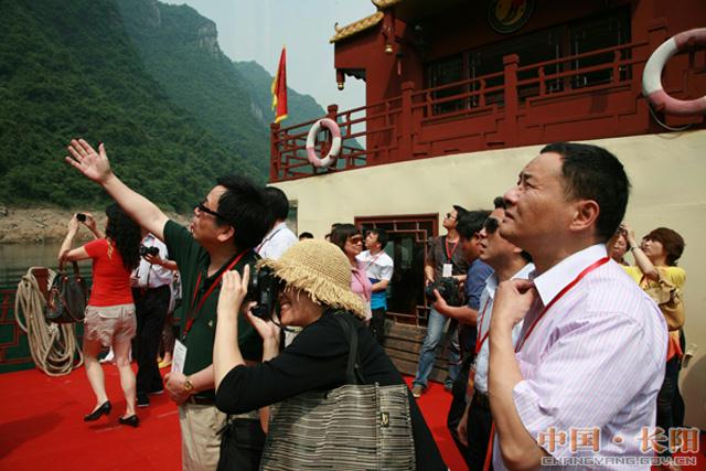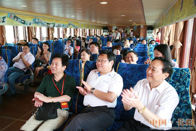 本网讯 6月7日,在第二届长江三峡国际旅游节开幕式结束之后,组委会邀请的中国百强旅行社代表近150人来到了土家长阳,对清江画廊等核心景区进行考察踩线活动。在活动中,各旅行社老总畅所欲言,对清江画廊秀美的自然风光和长阳厚重的土家民俗文化给予了高度赞赏。