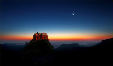 日月同辉 天柱山雪景 早上乘车赴长阳,抵达景区,浏览道教名山--中武当天柱山。观赏国家森林公园,天柱奇峰美景,到中国目前最大地母宫殿,朝拜地母,祈福消灾,吉祥康泰;登天柱山极顶,感爱一览众山小的壮美;过飞来天桥,尝神泉,感悟大自然的神奇;参